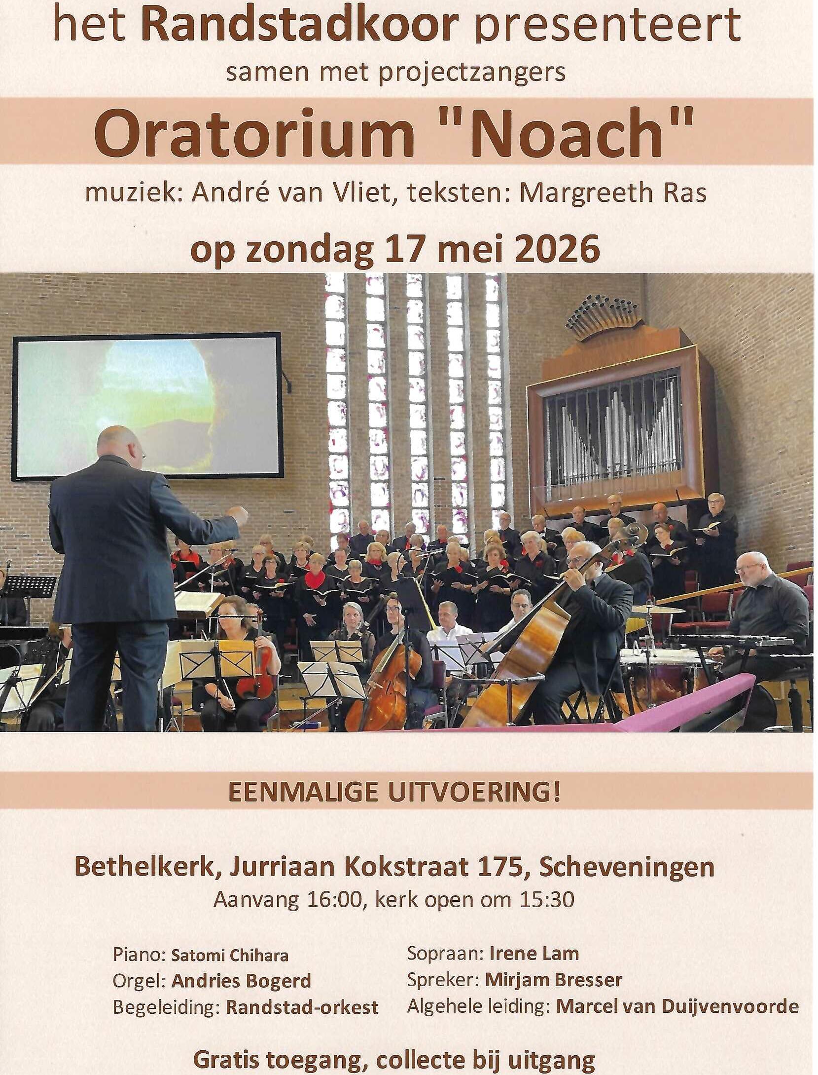 Op 17 mei houden we dan de generale repetitie om 13:00 met het orkest waarna om 16:00 de uitvoering van Noach volgt.